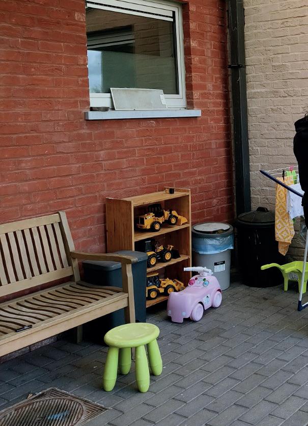 Daarnaast een kleine tuin, een gespreksruimte en een tweetal douchecabines op de benedenverdieping… Kortom, we moesten roeien met de riemen die we hadden. Verschillende gezinnen leefden er samen en moeder en kind konden zich af en toe eens terugtrekken op hun slaapkamer. Moeder en kind sliepen ook op de zelfde slaapkamer. Het samenleven van verschillende moeders met kinderen