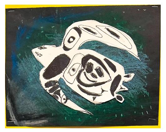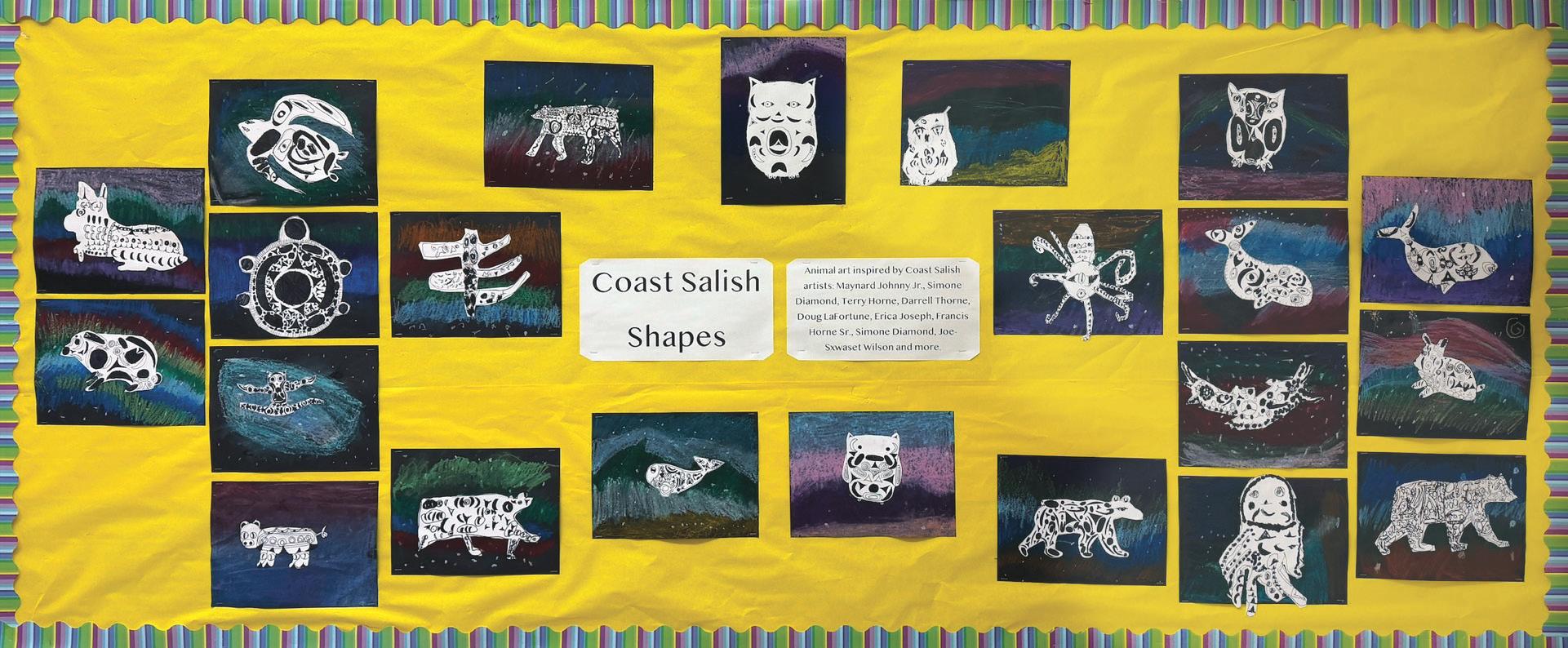 FOR THE PAST SEVERAL YEARS, I have taught a cross-curricular Coast Salish art unit with my Grades 3–4 classes, and this year I adapted it for a Grades 2–3 class. Without fail, it becomes a favourite for students and for me. Each time I teach it, I’m struck by how deeply engaged students are. Even my most energetic learners sit calmly at their desks, focused and immersed in their artwork. The unit offers a meaningful way for students to learn more about the beautiful land we are grateful to live on.