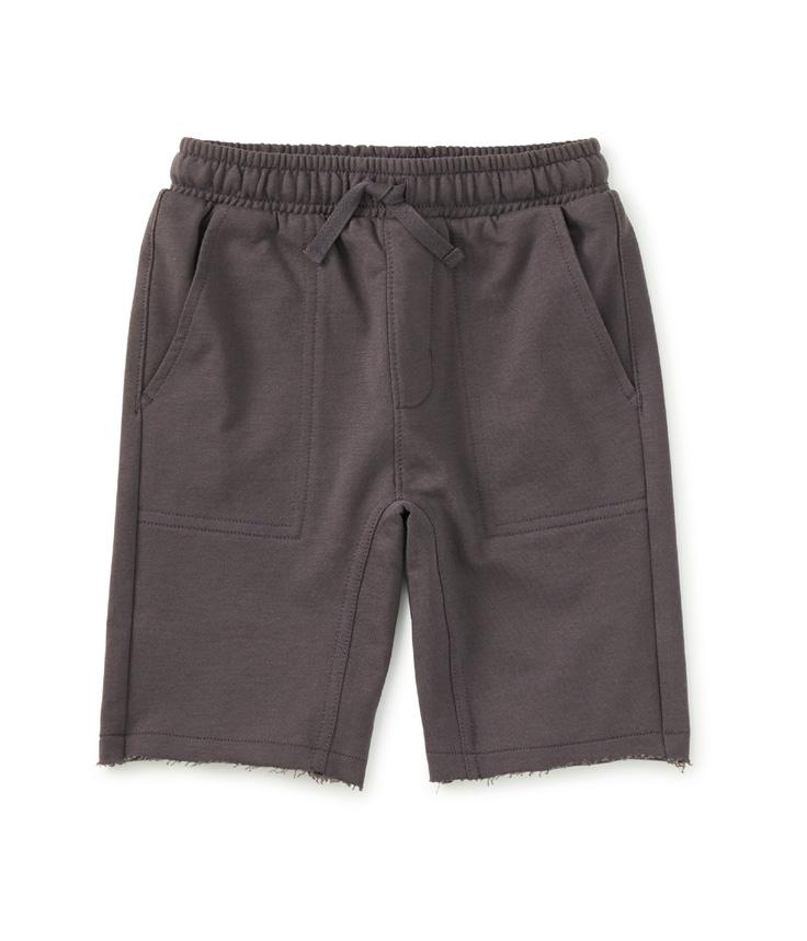 Raw hem gives a vintage vibe to these gym shorts.