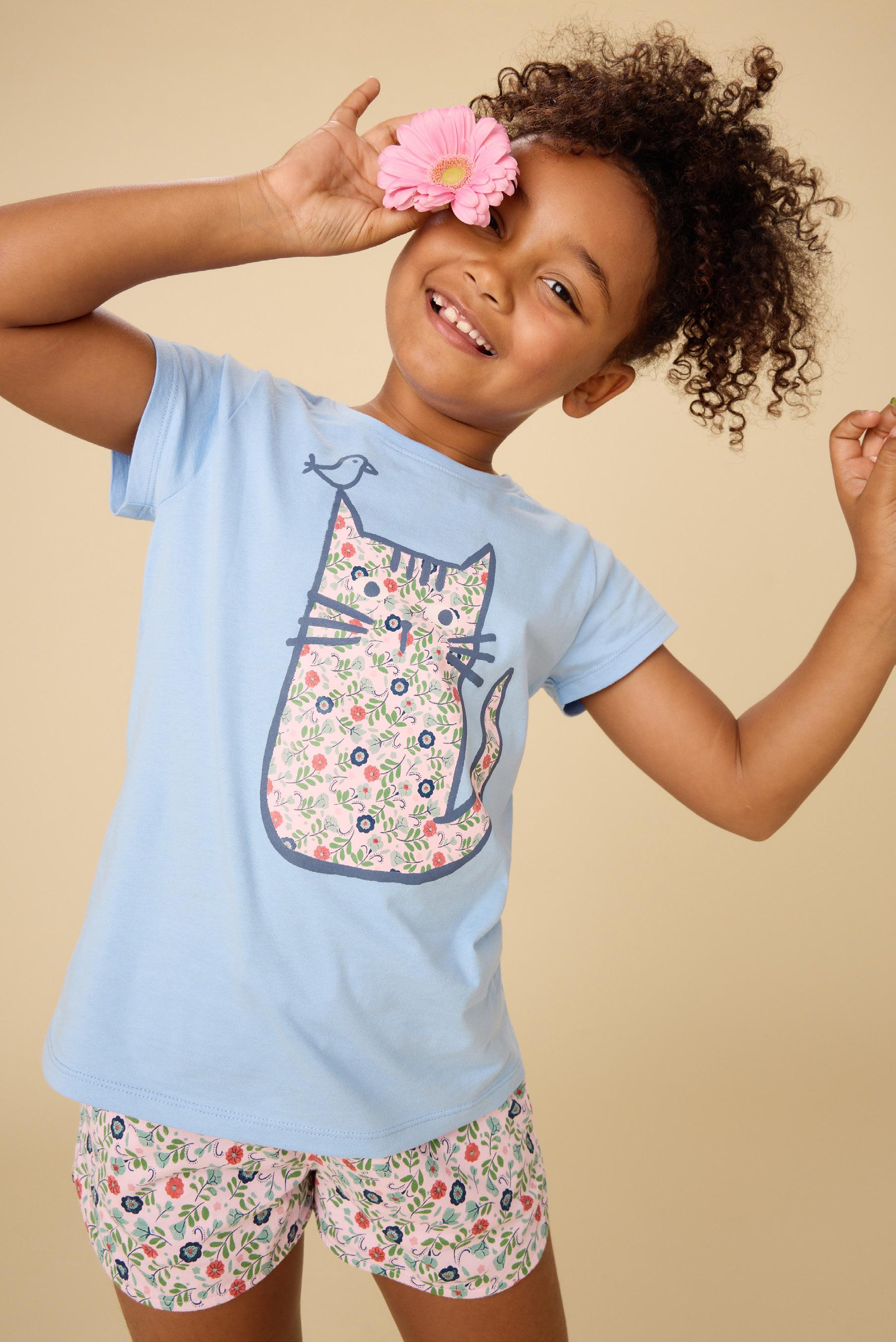 These shorts have a matching moment. The hand-drawn floral print shows up on the graphic tee, too!