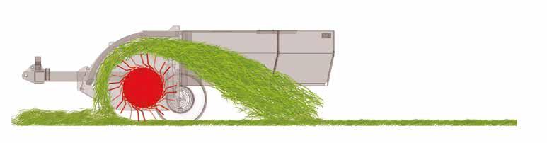 High forward speed means that huge quantities of grass, hay and straw can be processed, with the adjustable front hood optimising the conditioning action in any crop density.