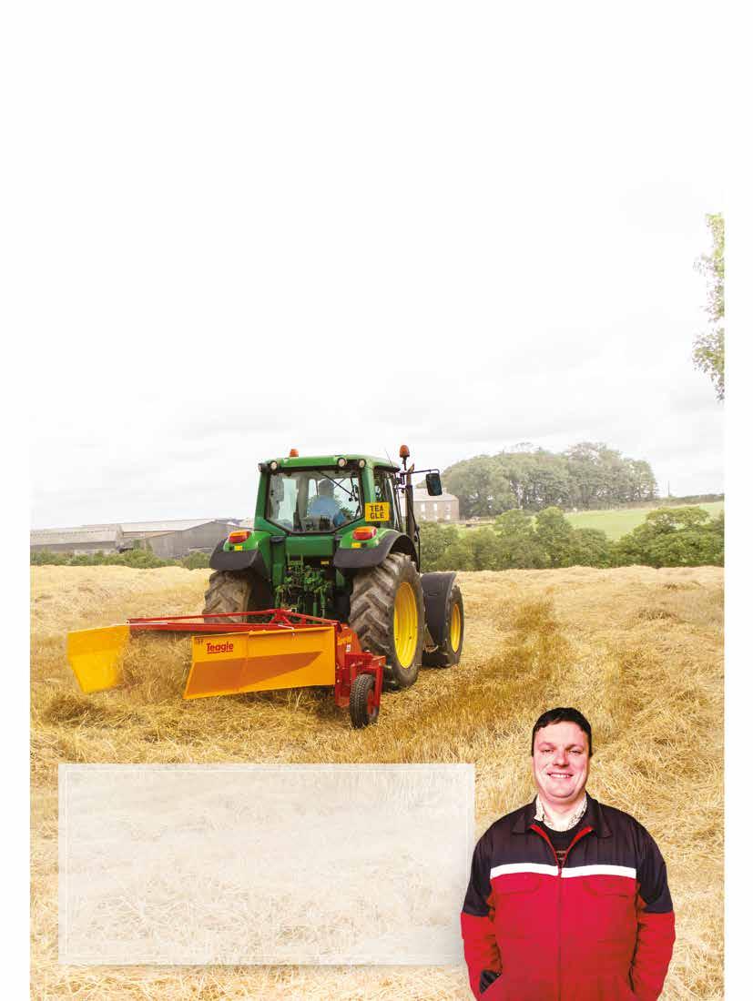 Alistair uses a Teagle Super-ted 221, to ted and condition his grass and straw (following a 40’ combine header). “I achieve fantastic work rates at a forward speed of around 10mph”.