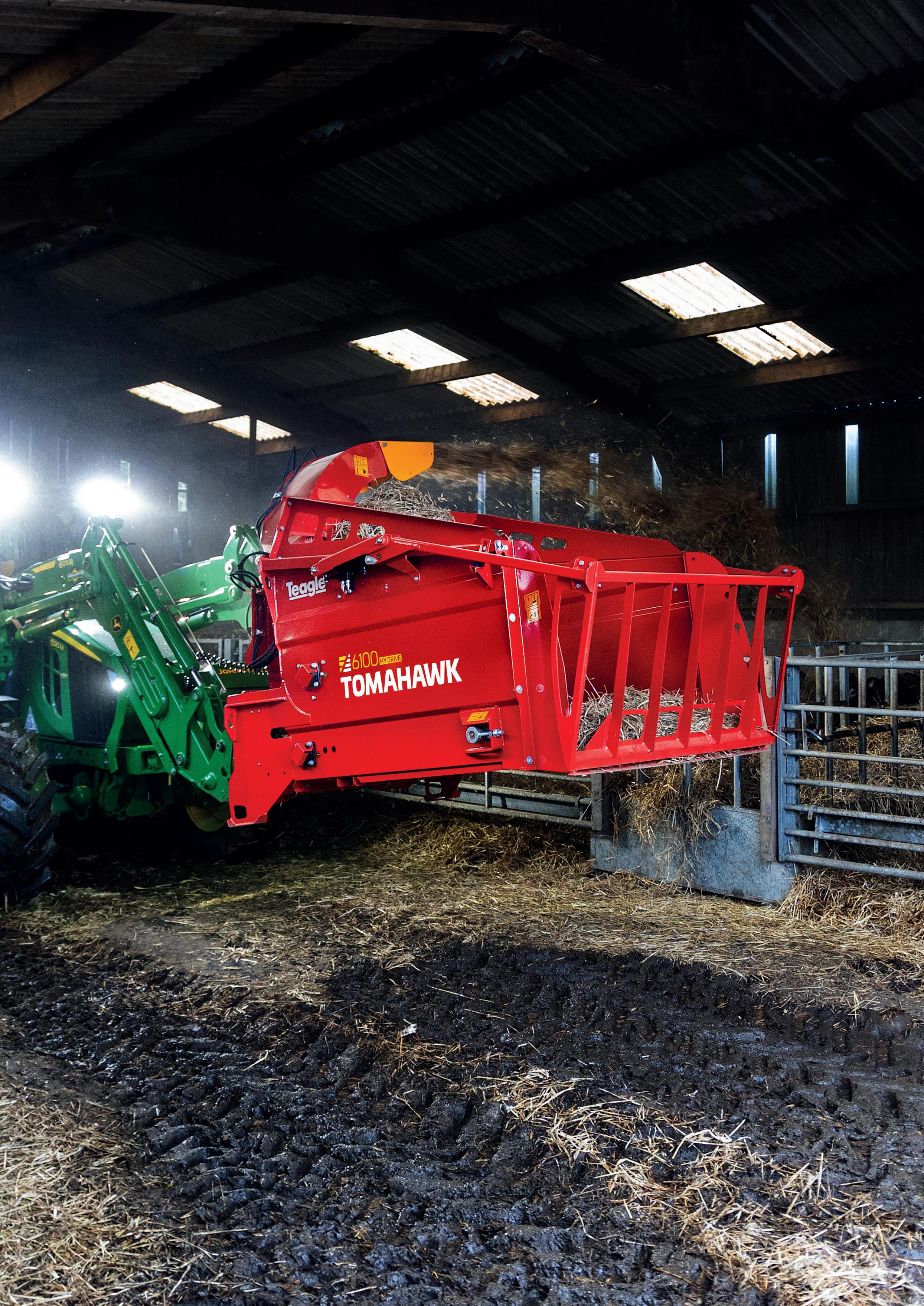 Access all areas with the handler mounted Tomahawk 6200 HyDrive. Front mounting offers unsurpassed visibility of the livestock when bedding down.