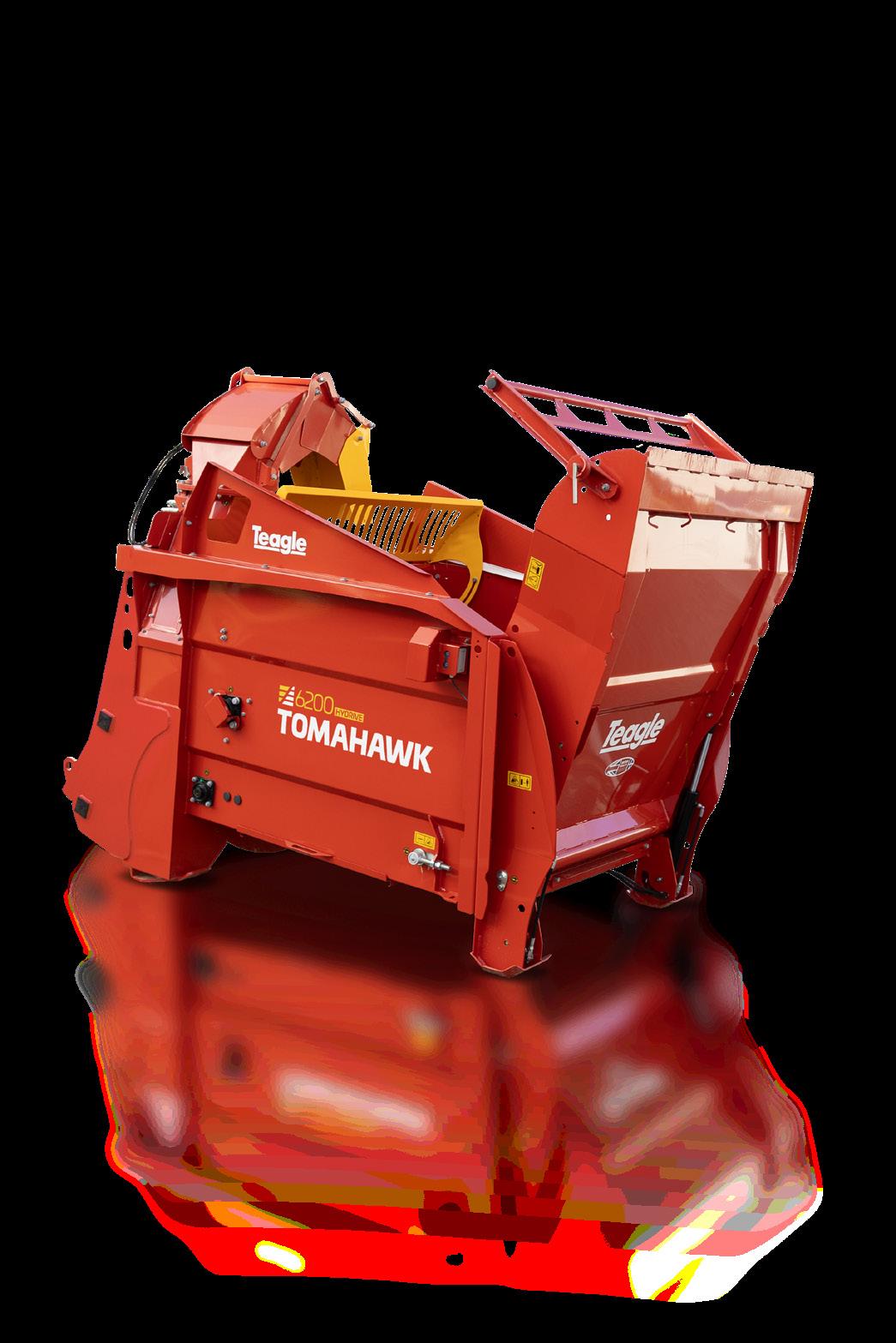 The Tomahawk 6200 Power Drive can accommodate a full 4’ x 4’ x 8’ (1.2 x 1.2 x 2.4m) rectangular bale, or a 5’ (1.5m) round bale.