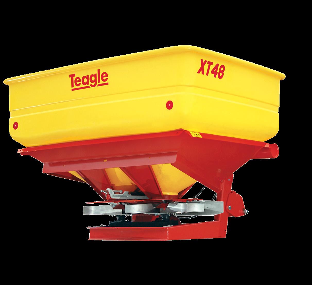 The XT48 can be found operating accurately and reliably worldwide. It features as standard a manual border spreading tilt system (hydraulic option available), quadruple overlap spread pattern (see p.2), stainless steel spreading mechanism, new double powder coated frame (see p.7) and removable LDPE hopper for straightforward cleaning.
