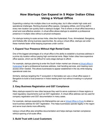 How Startups Can Expand in 5 Major Indian Cities Using a Virtual Office
