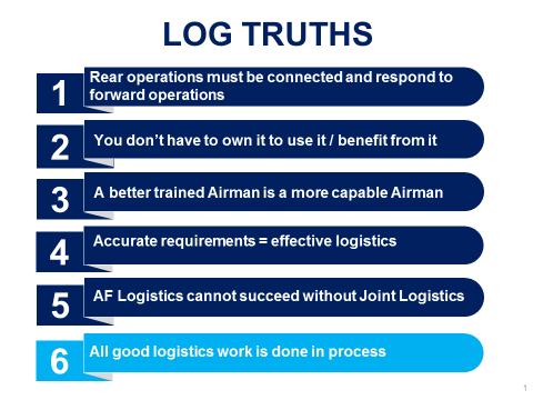 As I conclude this series, I believe each of these LOGTRUTHS captures the most important lessons learned over 70 years of American airpower. LOGTRUTHS are not so much a prescription for solving a problem, but a guide post for leaders when a problem is identified. They are a doctrinal starting point to build a solution. Wherever and however you support the Logistics Enterprise, use these LOGTRUTHS to shape how you tackle future challenges. While this is my last article on LOGTRUTHS, I want the conversation to continue. Share your experiences with your local LOA chapters and tweet your inputs to @AFCoopA4