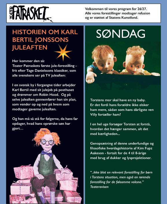 Alle forestillinger, der optræder i brochuren, er refusionsberettigede*. Det er muligt at læse mere om Refusionsordningen på Kunststyrelsens hjemmeside.