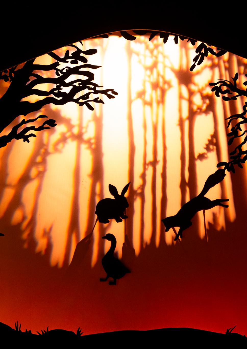 El teatro de sombras es una forma de narración que utiliza la silueta de figuras de cartón, de otros materiales o de tus manos, que colocadas entre una fuente de luz y una pantalla blanca para proyectar imágenes, crea historias en un entorno oscuro. Es muy antiguo y se cree que es originario de China, pero hoy se utiliza en todo mundo para contar distintos tipos de historias.