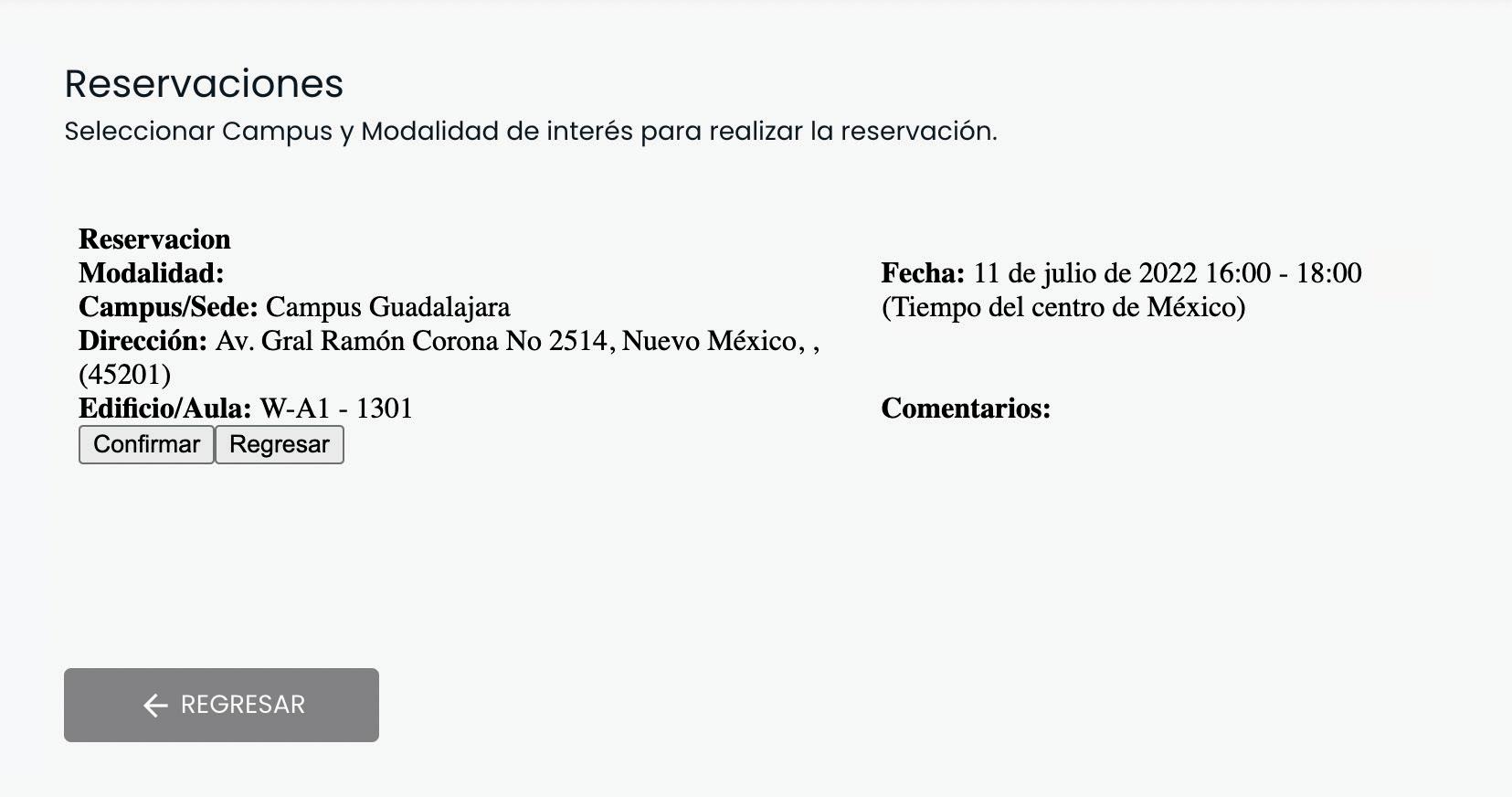 Una vez que hayas seleccionado la fecha y hora, te llevará a esta pantalla donde deberás confirmar tu selección para continuar con tu proceso.