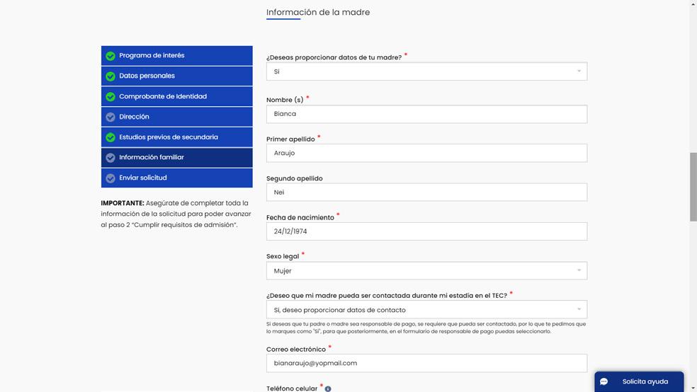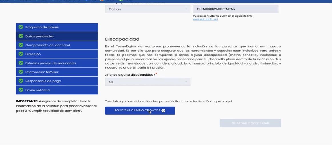 * Deberás realizar este mismo proceso para los diferentes cambios que requieras, ya sea para ti o tus personas relacionadas al proceso de admisión.