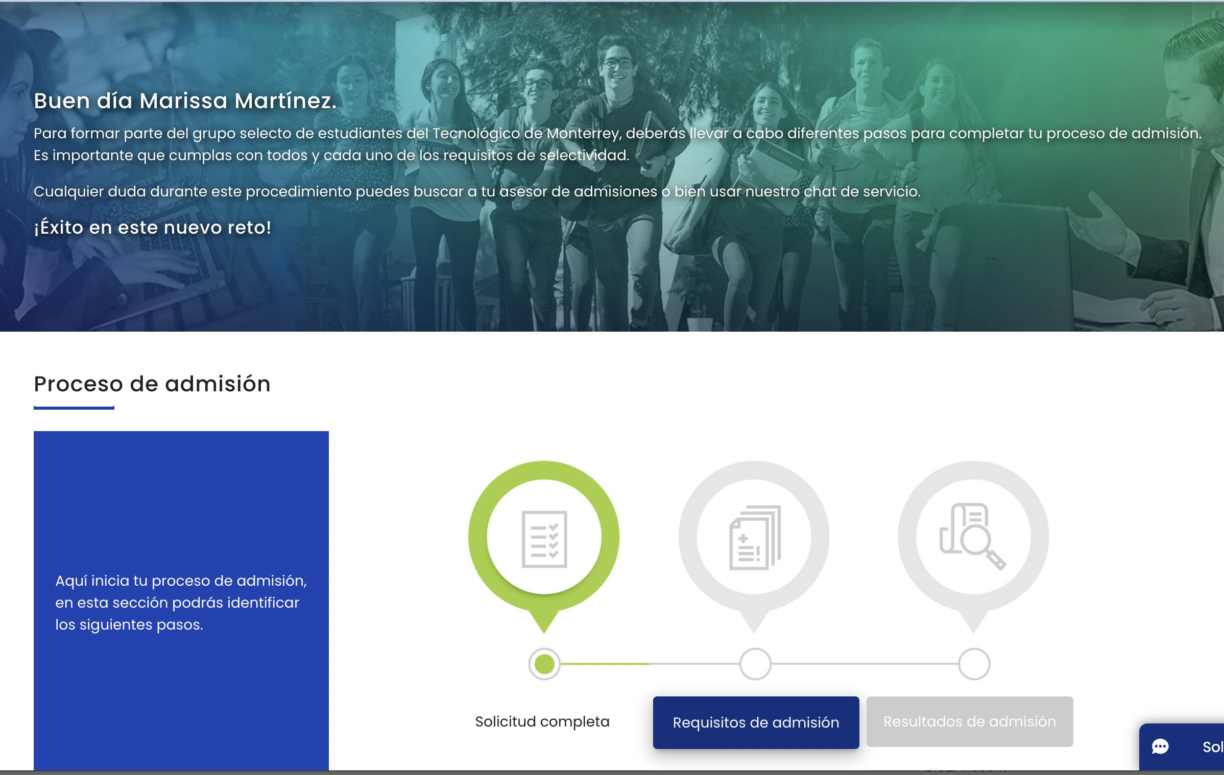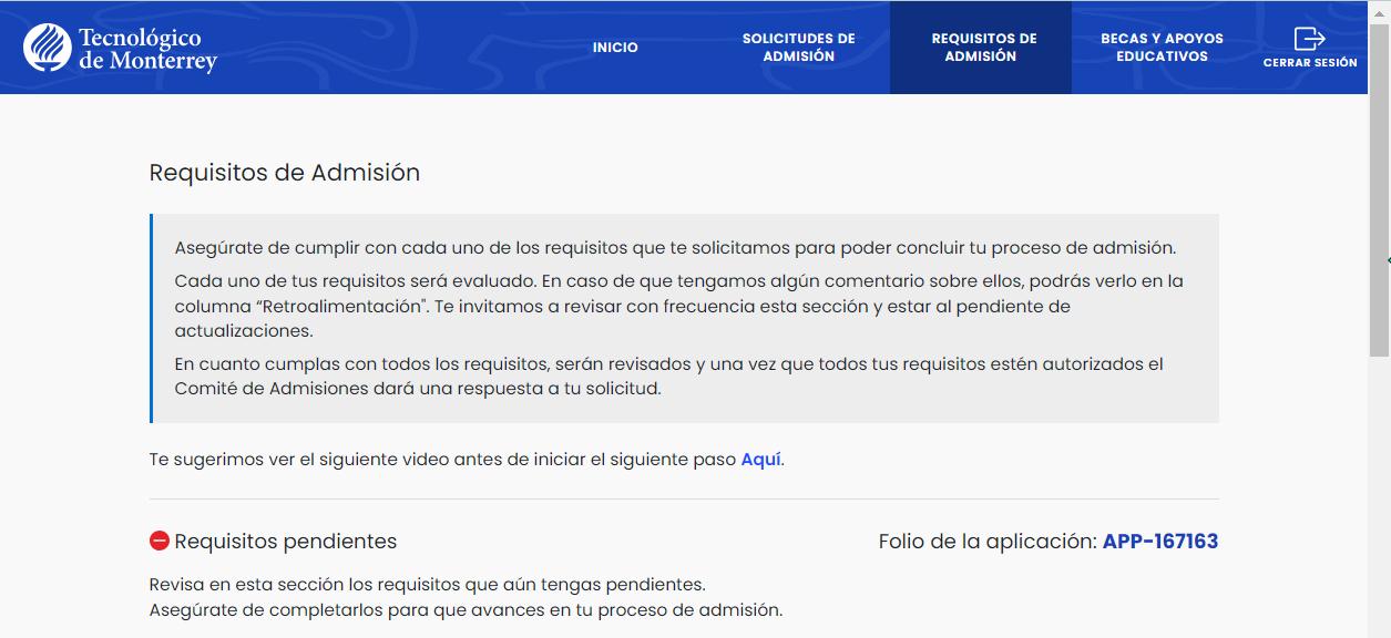 Si ya has enviado tu solicitud, verás su ícono en verde, da clic en Requisitos de admisión para continuar.