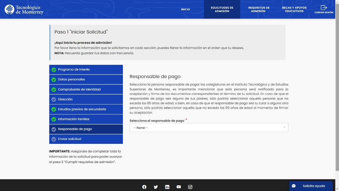 Asimismo, se te solicitará la información del responsable de pago.
