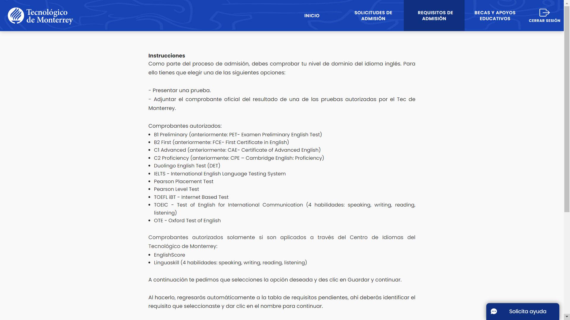 Consulta las opciones de pruebas autorizadas por el Tec de Monterrey para aprobar este requisito.