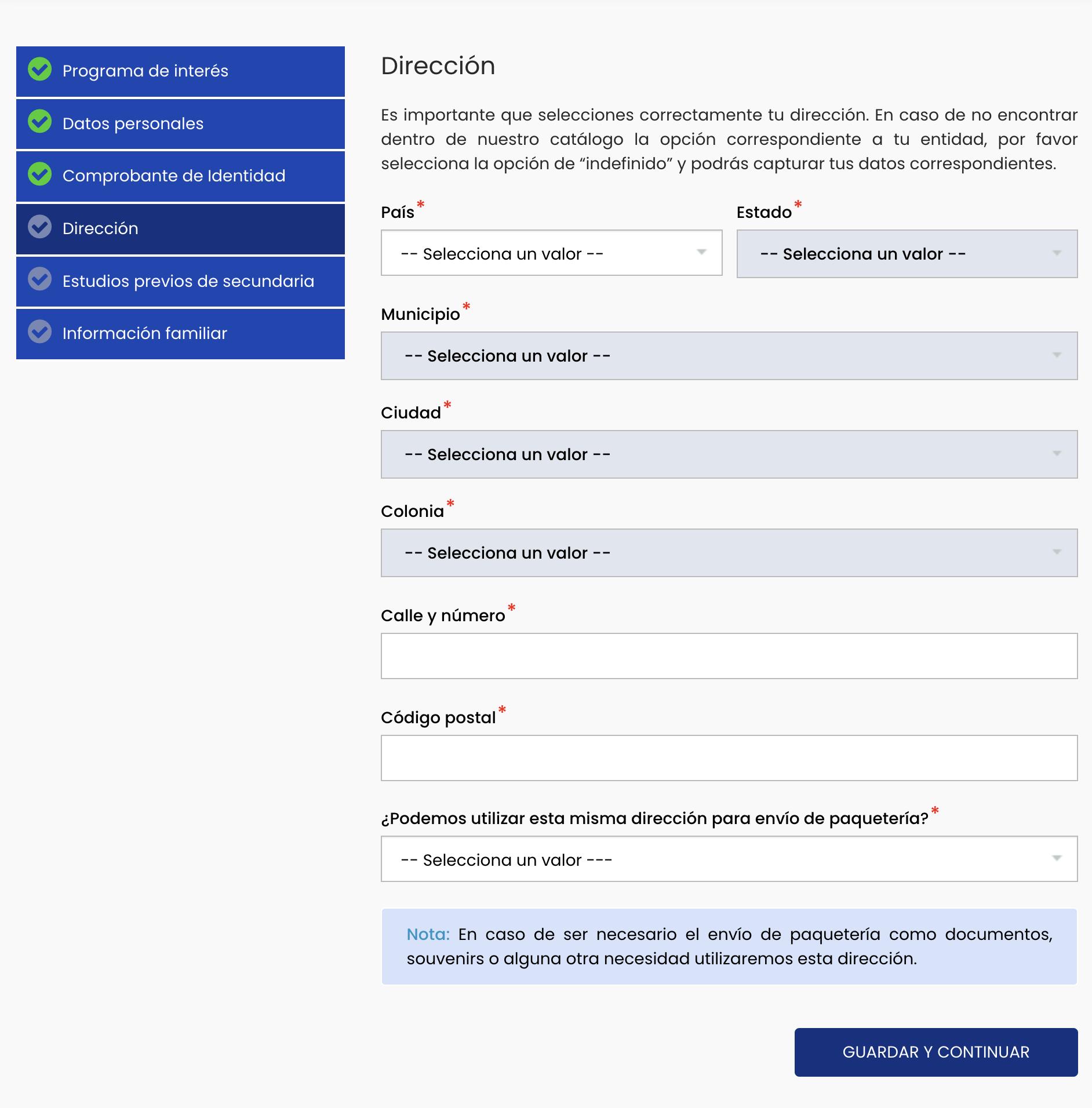Una vez que hayas llenado los datos, da clic en GUARDAR Y CONTINUAR.