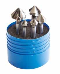 Serie di 6 svasatori a 90° TA1230, a 3 taglienti, in HSS, DIN 335C, non rivestiti, codolo cilindrico. Composto da 1 pz. per tipo Ø 8,3 – 10,4 – 12,4 – 16,5 – 20,5 – 25.