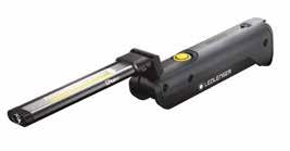 Torcia da ispezione reclinabile, per uso individuale, dotata di batterie Li-ion ricaricabili. Può illuminare con luce diffusa in modo uniforme e due stadi di intensità (flood), oppure in profondità (spot) con lente riflettore. Con gancio e magnete integrati nel corpo della torcia, per consentire diverse soluzioni di fissaggio. Autonomia: 3 h (300 lumen), 2 h (600 lumen). IP54.