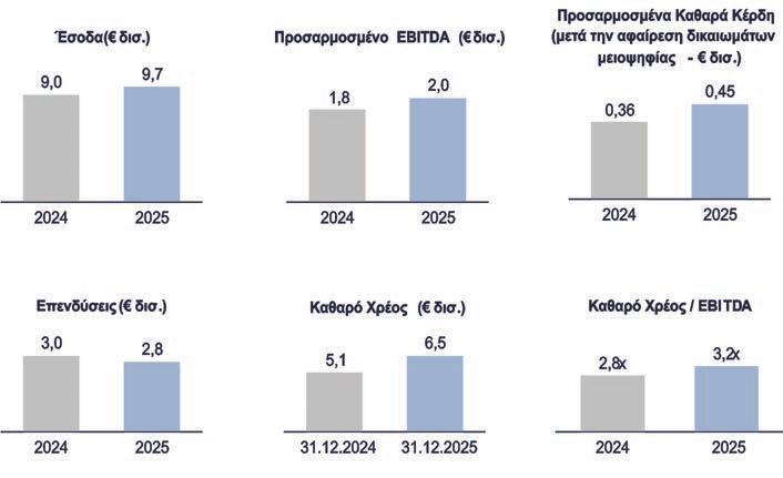 Οικονομικές επιδόσεις Τα προσαρμοσμένα κέρδη προ τόκων, φόρων και αποσβέσεων (EBITDA) αυξήθηκαν σε €2 δισ. από €1,8 δισ., ενώ τα