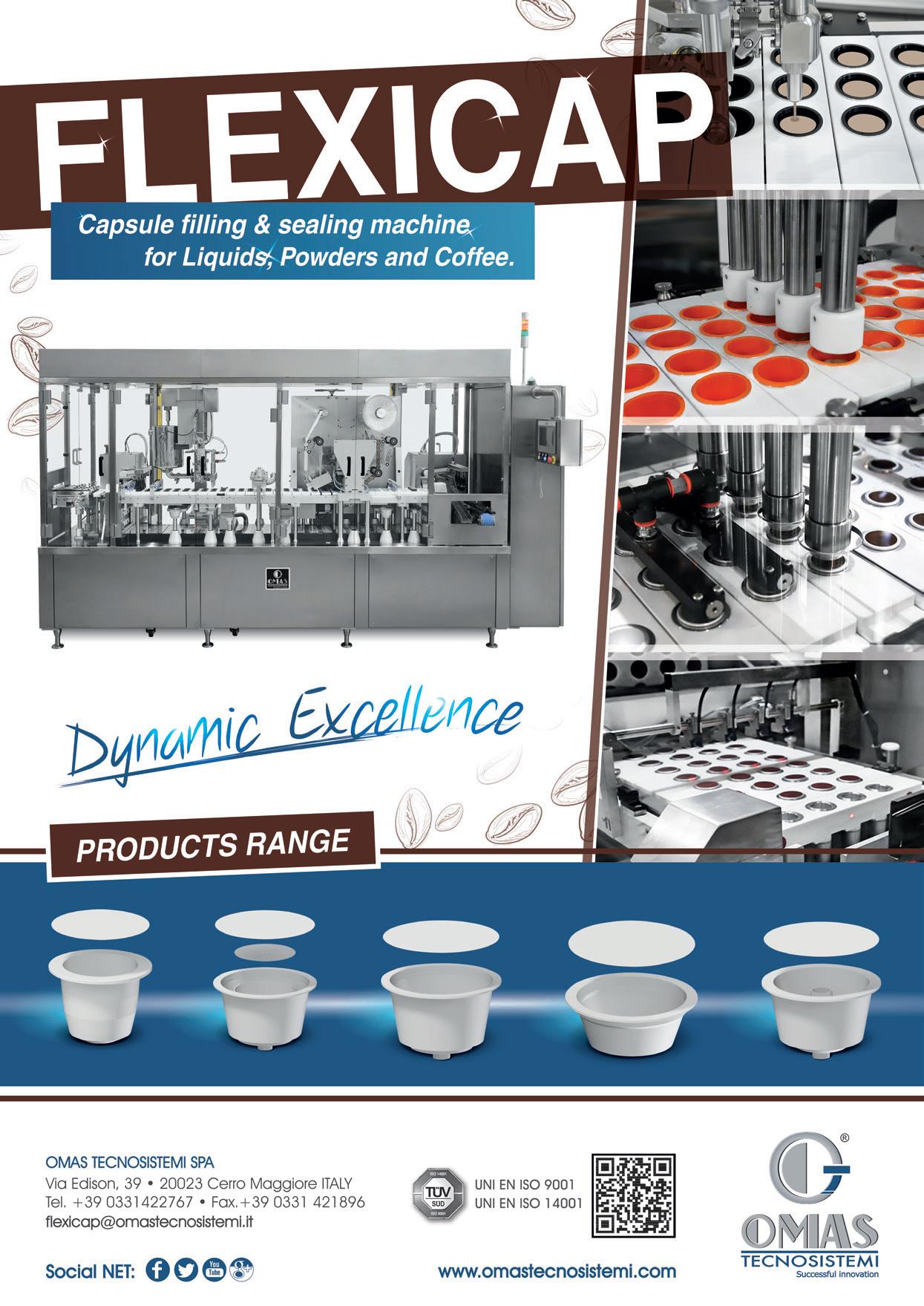 FLEXICAP has been designed to run different formats for both liquid products, powders and coffee. It applies a pucks system to move the capsules through the filling, filter insertion (where required) and cut and seal top lid stations.
