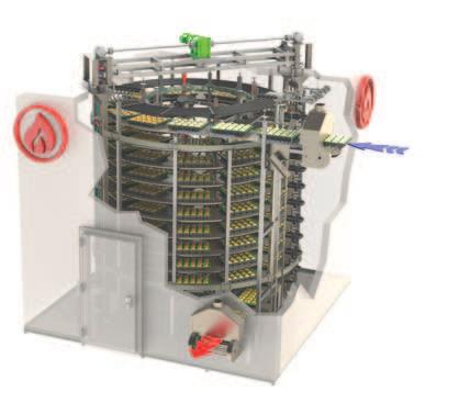 All’interno della macchina è installato il serpentino rotante brevettato, utilizzato per il riscaldamento a vapore indiretto del prodotto che,grazie alla particolare disposizione delle sue spire, permette una distribuzione termica uniforme, un maggior rispetto della pezzatura finale del prodotto trattato e la garanzia di una delicata ma efficace miscelazione di quest’ultima.