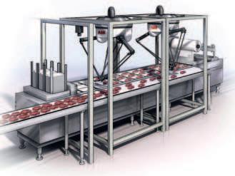 Robots are also used in secondary packaging,i.e.to put a previously packaged product into a carton or shipping container.Finally,the third area whereABB offers knowhow and expertise is palletization, when the cartons/ boxes are handled and stacked onto a pallet. With their versatility, robots can perform a number of accessory operations, none of them less important, such as depalletization or other operations along the production process. Application examples with ABB robots include curd cutting in the dairy industry, snack portioning or bread scoring. Such capabilities are drawing increasing attention from different industries.