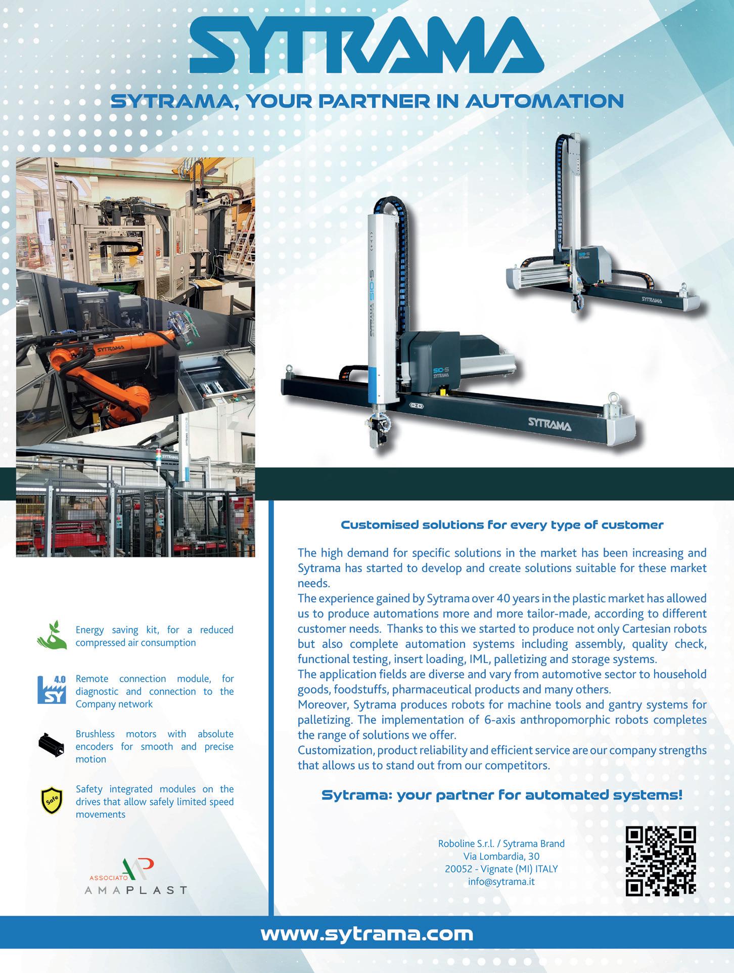 Finally, Sytrama with the entire Nissei Plastics Group organizes and carries out events such as “open house” events in Italy and in the other subsidiaries abroad, in order to promote its products and making the quality of its automations touchable with hands, keeping alive the direct human relations with our customers.