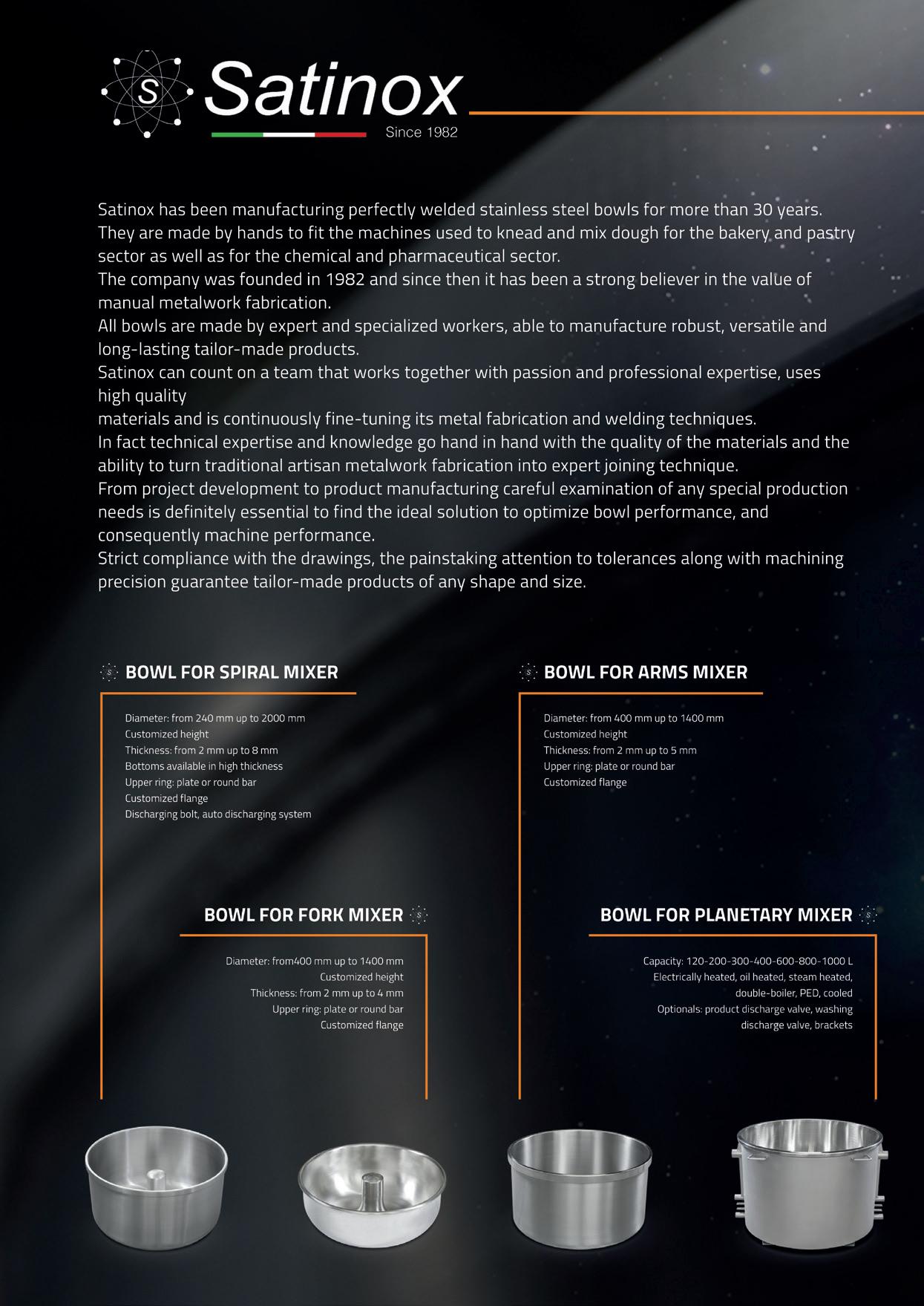 • Spiral mixers Silver Line with removable bowl in the following models: 80,120,160,200,250, 300 kg of dough capacity.