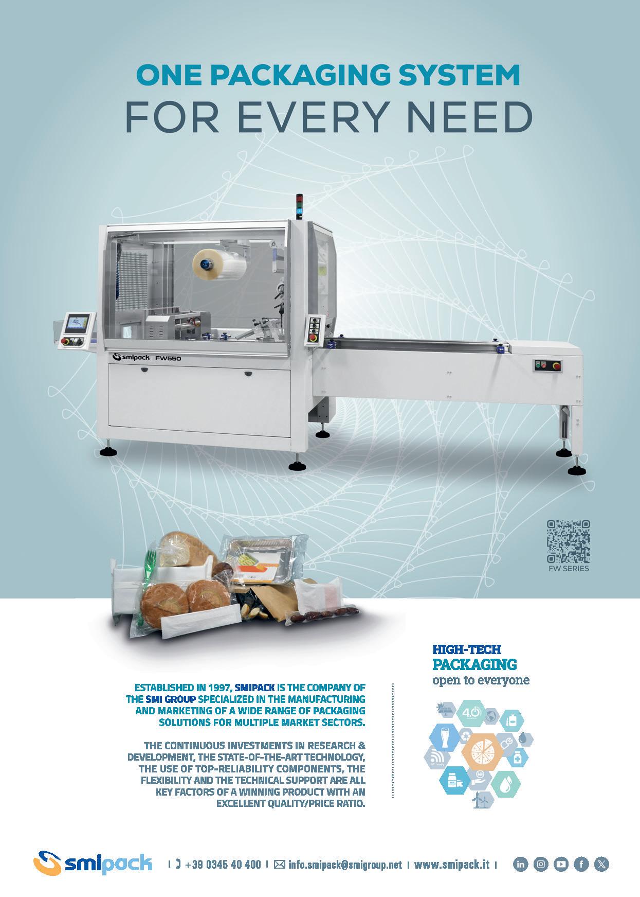 From snacks and bakery products to ready meals, local manufacturers require machines capable of handling a variety of formats (singleserve or multi-pack) and materials — including mono-material, laminated, paper-based and metallized films — with options suitable for e-commerce-ready packaging. The FW series delivers high