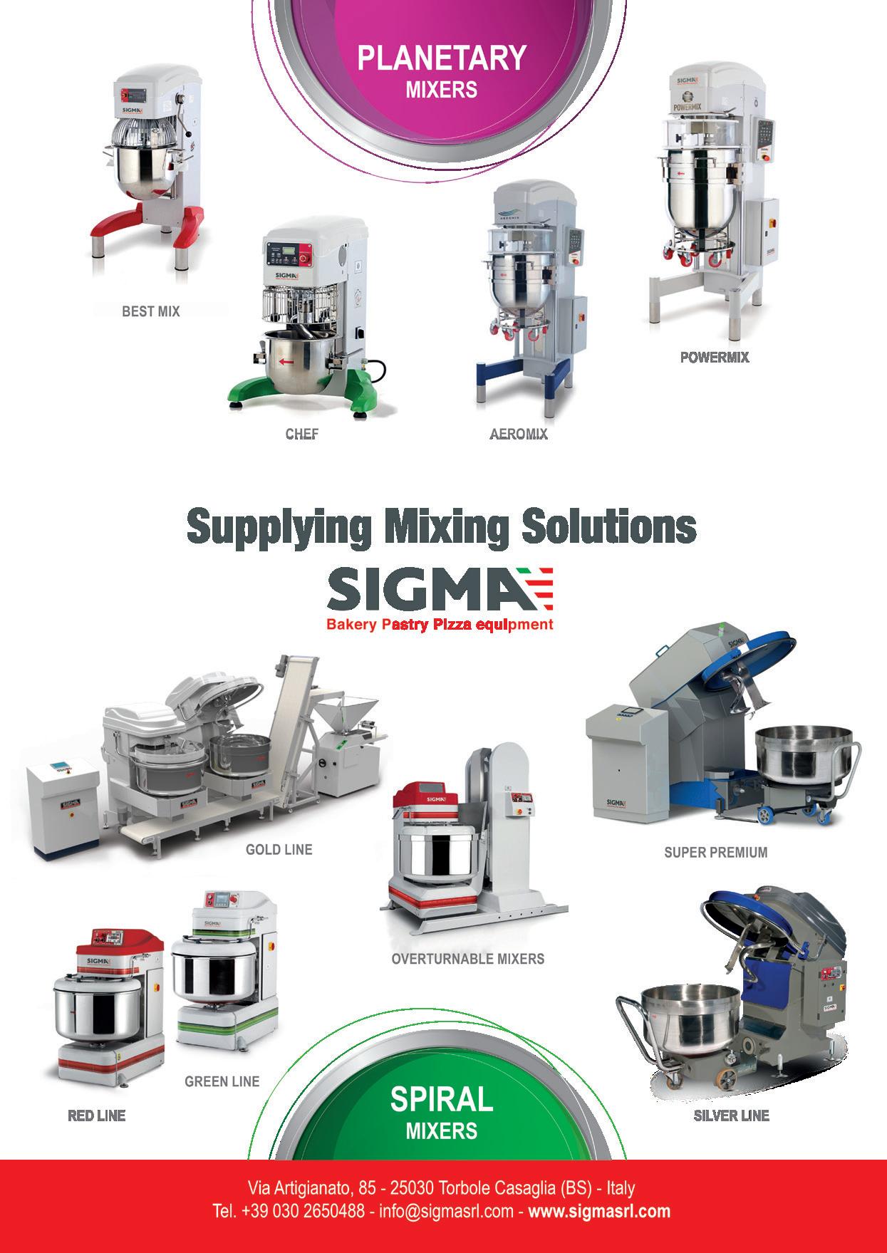 All the Sigma manufactured equipment complies with EU safety and hygiene directives. Today, Sigma is present in over 100 countries in the world through its 500 regular dealers. The attention paid to its customers and constant commitment to innovation have always distinguished the Sigma’s philosophy.