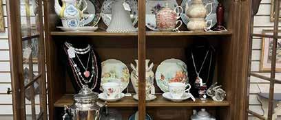 According to proprietor Michele Hinkley, “You can see antiques, jewelry including state jewelry, silver, Touchstone Crystal by Swarovski, and much more.” She continued, “Maybe a piece of clothing or an accessory, or a handbag. You’ll see a little bit of everything.” And all of it is displayed nicely among beautiful pieces of furniture and household items, all available for purchase.