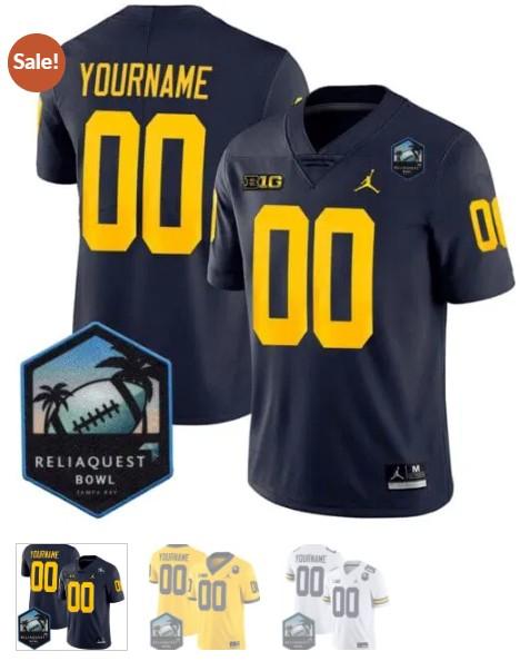 Custom Michigan Wolverines Jersey Name, Number ReliaQuest Bowl Patch Stitched Football