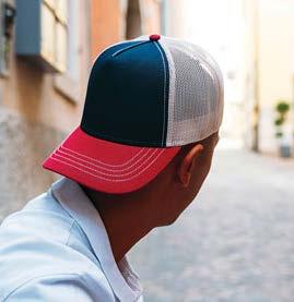 5 panneaux. Panneau avant et visière en jersey. Filet mesh à l’arrière. Panneau avant renforcé.