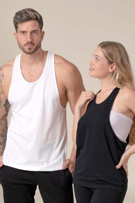 Tee-shirt sans manche. Encolure ronde double épaisseur en côte 1x1 et élasthanne. Coutures latérales.