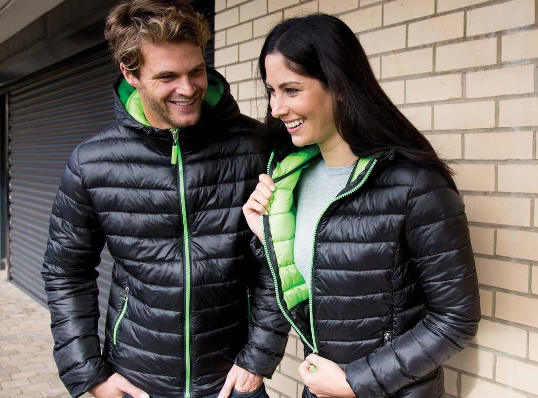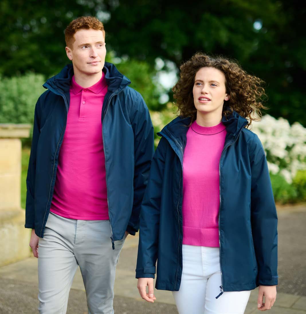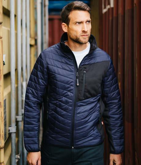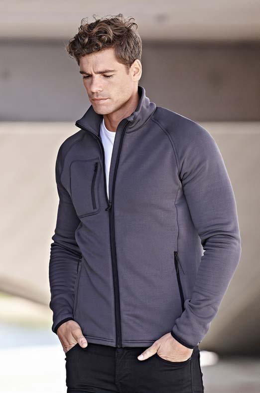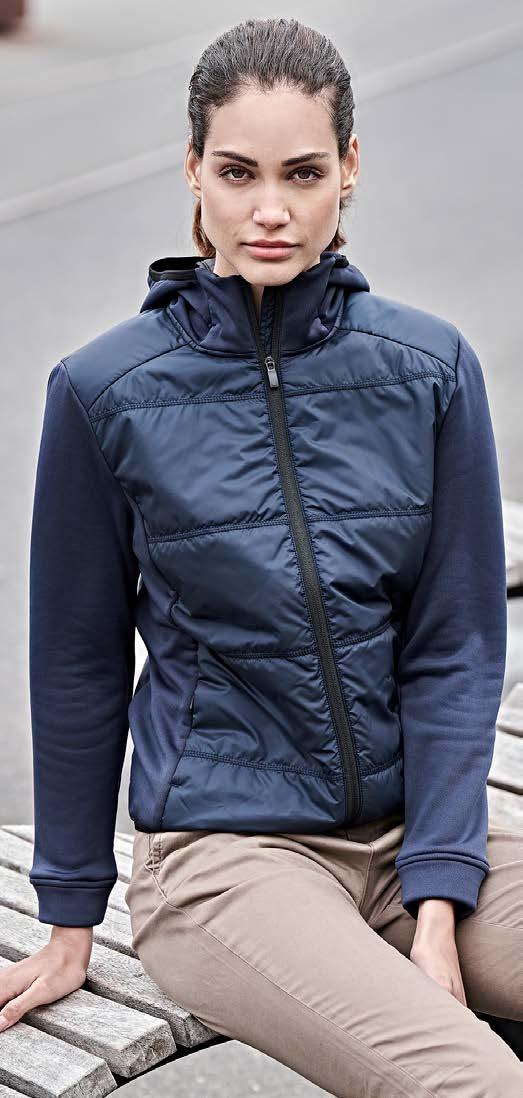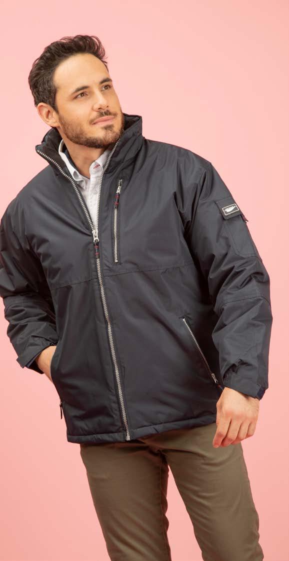 Coupe tubulaire. Renfort d’épaule à épaule. Manches travaillées pour un look plus actuel.
