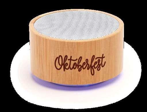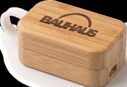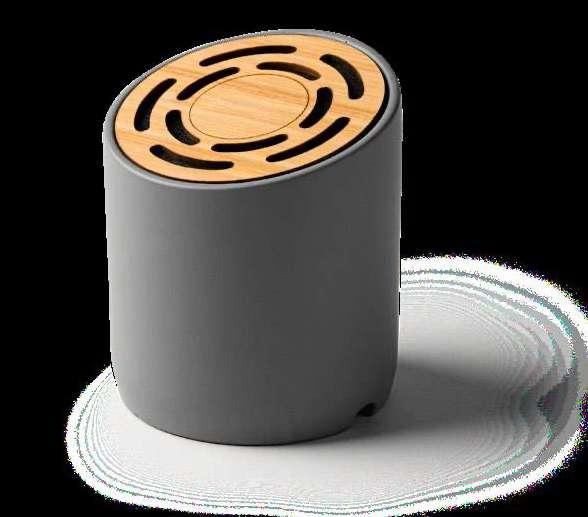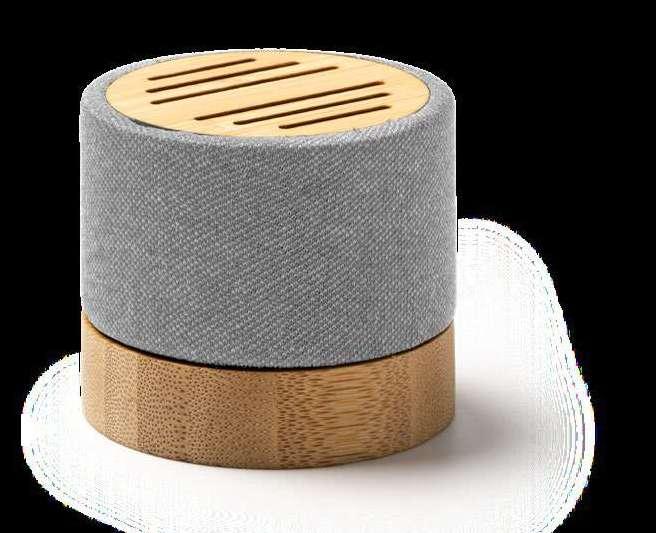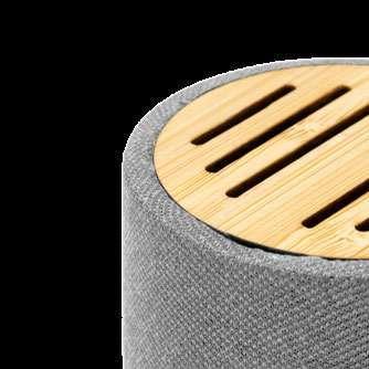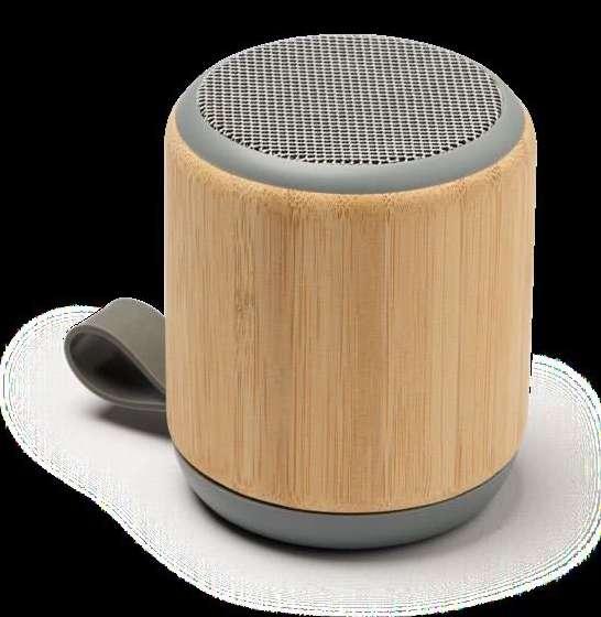 Haut-parleur sans fil avec structure principale en bambou et sangle élégante. Sortie 3W. Batterie rechargeable. Câble fourni. Présentation en boîte éco-conception. 8,1 x Ø6,90 cm 1 50