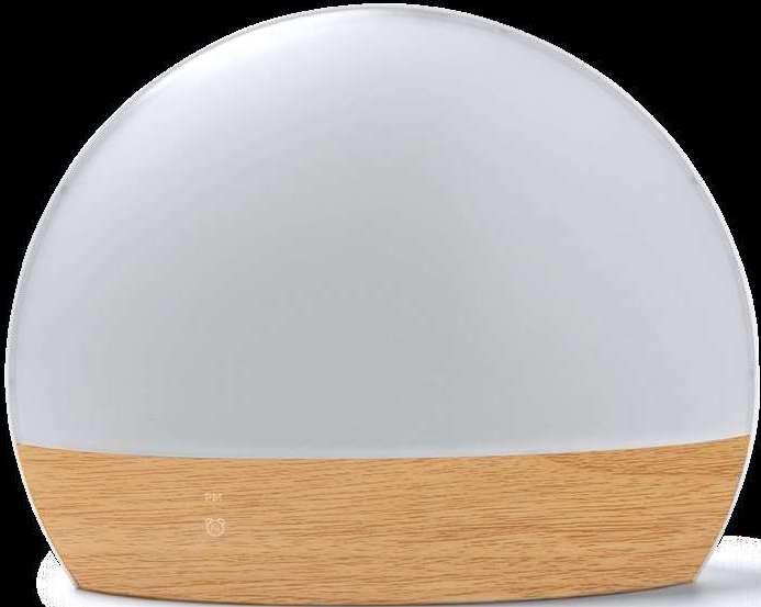 Réveil lumineux en ABS recyclé avec mode lumineux progressif. Caractéristiques : heure, date et température. Lumière LED en plusieurs couleurs. Câble fourni. Présentation en boîte écodesign.