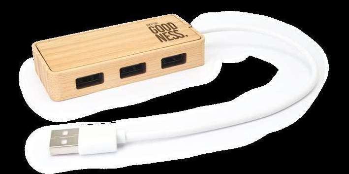 Port USB avec corps en bambou naturel et câble vierge. Comprend 3 ports USB. Présentation en coffret éco design.