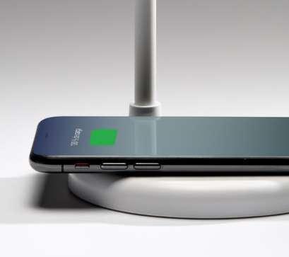 Lampe de table pliable en bambou avec chargeur sans fil intégré de 10 W. 25 lumières LED avec 3 modes d'éclairage et d'intensité. Minuterie de 1 à 2 heures. Présentation en boîte écodesign.