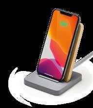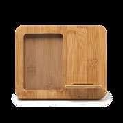 Chargeur sans fil en bambou naturel intégré dans le plateau de rangement. Compatible avec les modèles avec technologie de charge sans fil. DC5V. Câble blanc inclus. Présentation en coffret éco design.