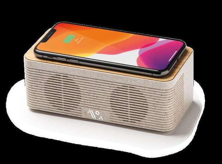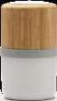 Haut-parleur sans fil avec corps en ABS blanc et bambou naturel. Fonction radio FM, mains libres, emplacement pour mini-carte SD et alimentation 3W. Batterie rechargeable. Câble inclus. Présentation dans un coffret design kraft.