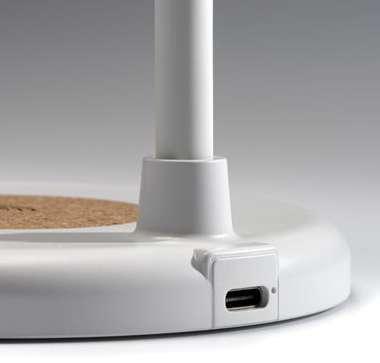 Lampe de table avec détails en liège, chargeur sans fil 10 W intégré sur la base et haut-parleur sans fil 3 W. Lumière LED avec trois modes d'éclairage. Présentation en boîte écodesign. 33 x Ø12 cm 1 20 F(1)