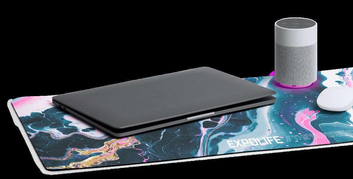 Tapis de souris avec chargeur sans fil intégré. Surface de pliage en liège naturel doux avec base antidérapante. DC5V. Câble inclus. Présentation en coffret éco design.