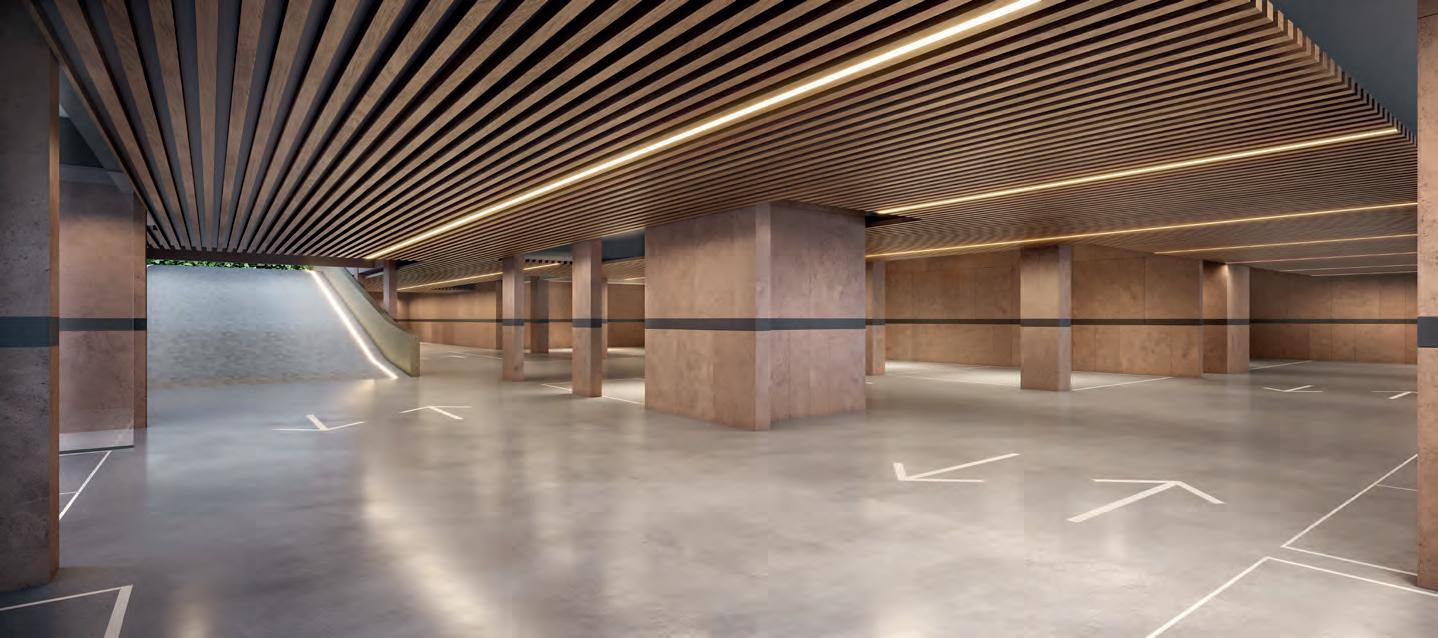 Materiais nobres e sofisticados como madeira, concreto e porcelanato revestem a torre por um sistema industrializado de fachada ventilada que se preocupa em trazer atributos sustentáveis para sua construção e manutenção.