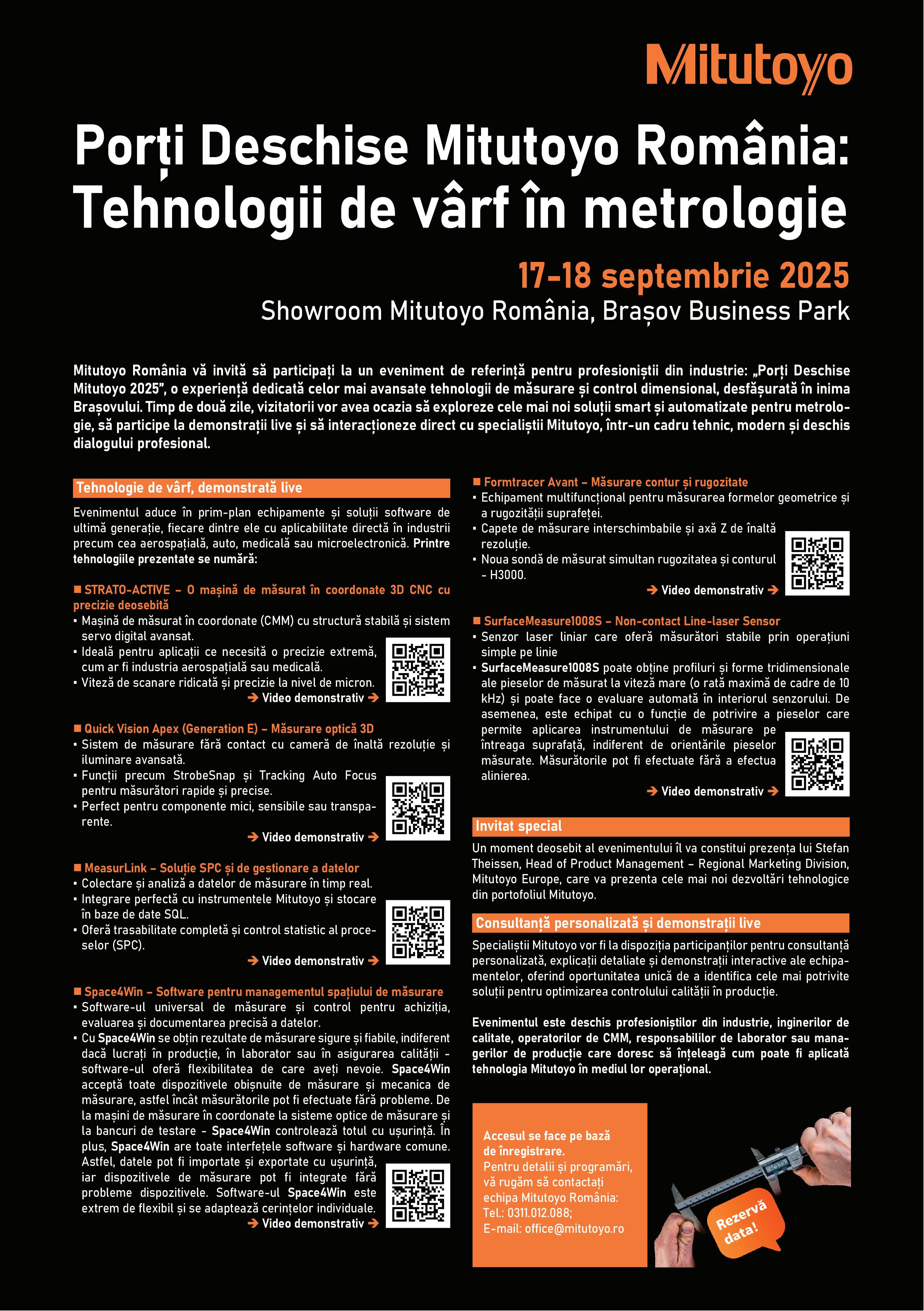 Porți Deschise Mitutoyo România, eveniment dedicat controlului calității și măsurării de înaltă precizie, Brașov