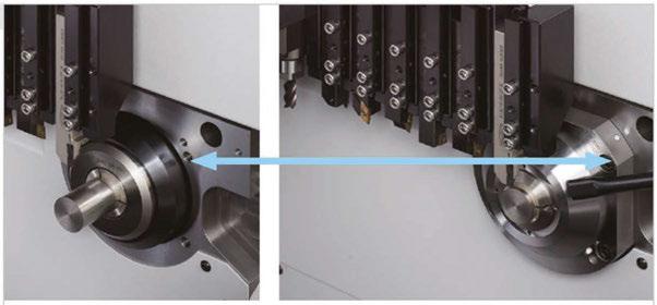 1 Alimentarea cu bară cu 0 38 mm este, de asemenea, acceptată ca opţiune. Independent decapacitatea barei, lungimea de prelucrare pe prindere este de 320 mm. Se poateprelucrao gamă largă de piese.
