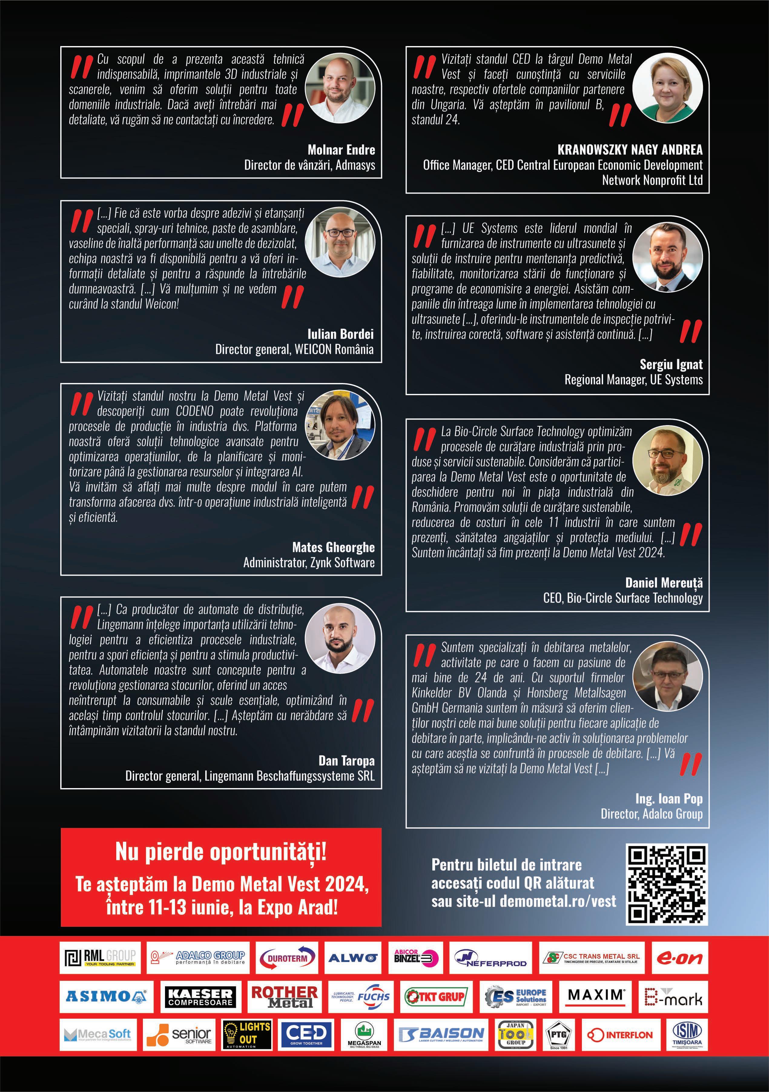 Inovaţie şi eficienţă la Demo Metal Vest 2024