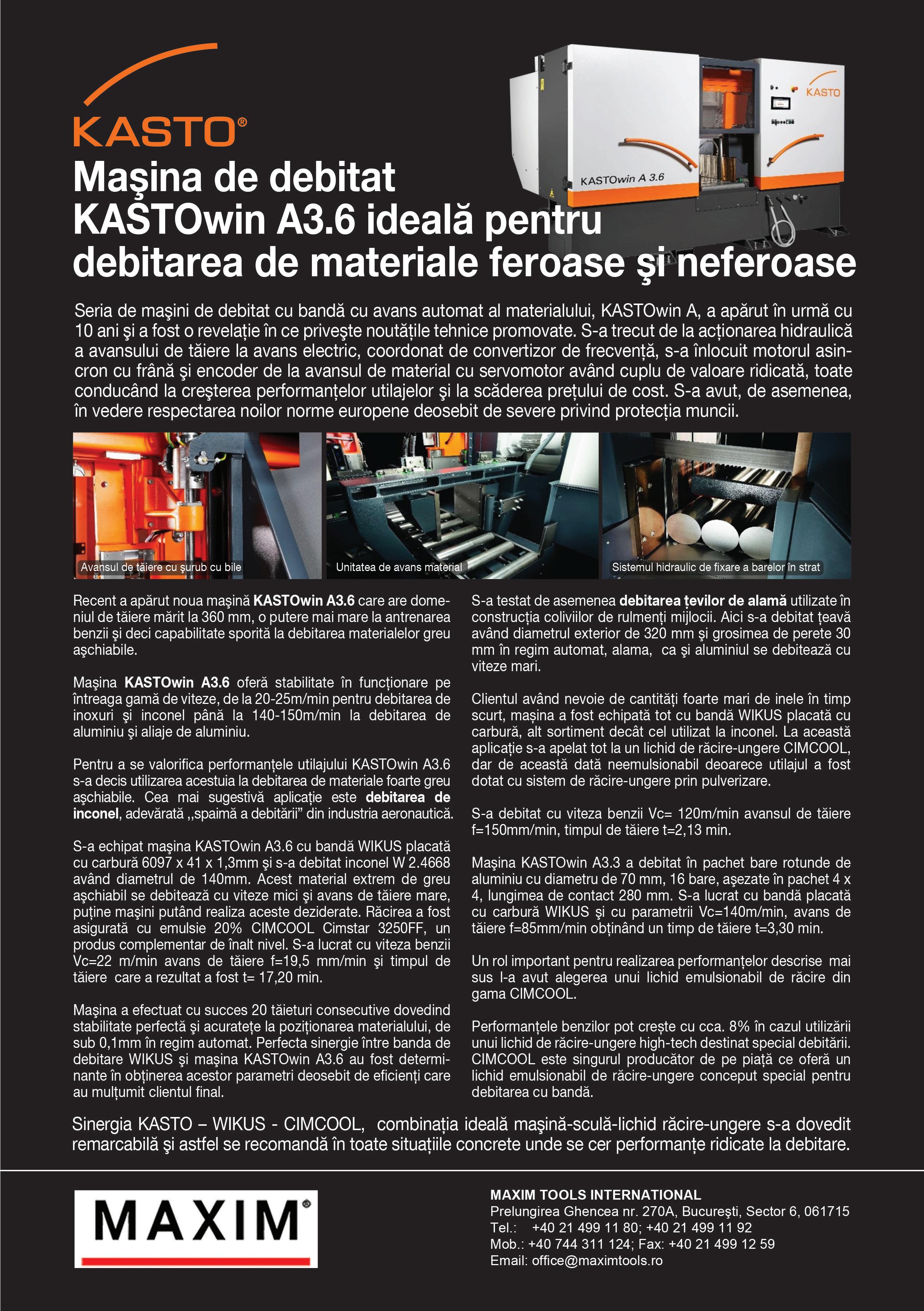 Maşina de debitat KASTOwin A3.6, ideală pentru debitarea de materiale feroase şi neferoase