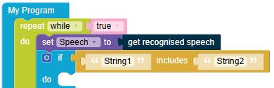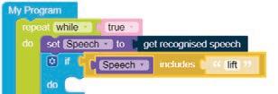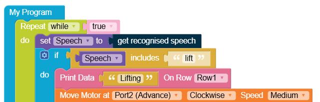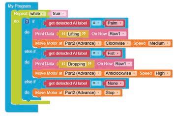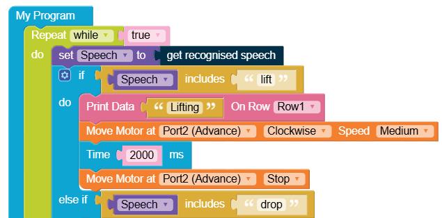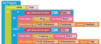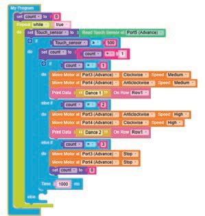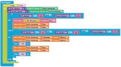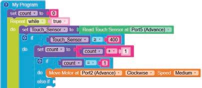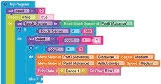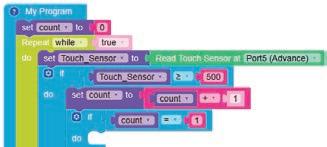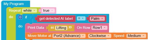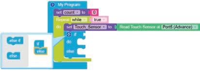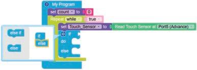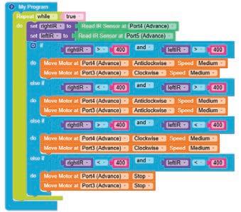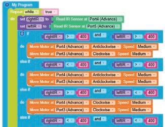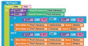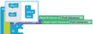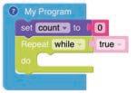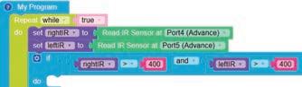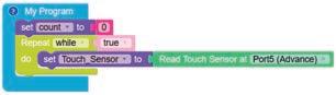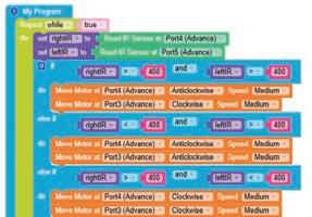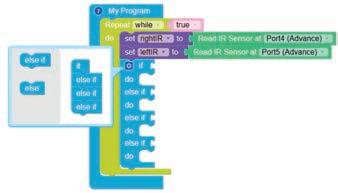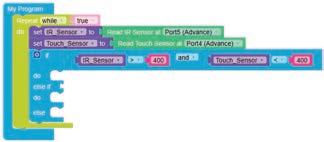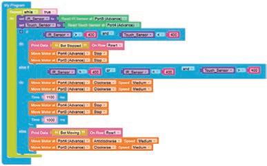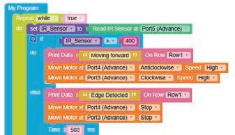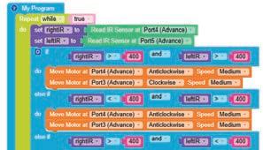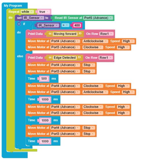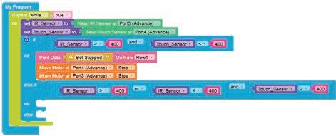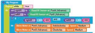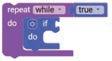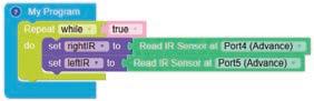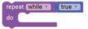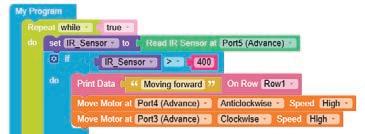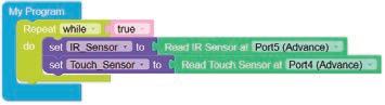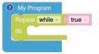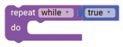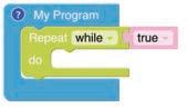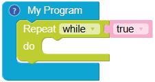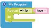 • To move the bot forward for infinite time, use the Repeat while block from the Loops category with the Move Motor at blocks.