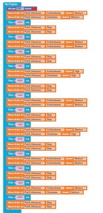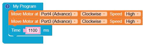 • Similarly, drag another Move Motor at block and drop it below the previous block.