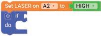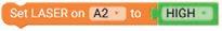 1. Drag the Set LASER on block from the LIGHTS category and drop it to the workspace. Set its pin to ‘A2’ from the drop-down.